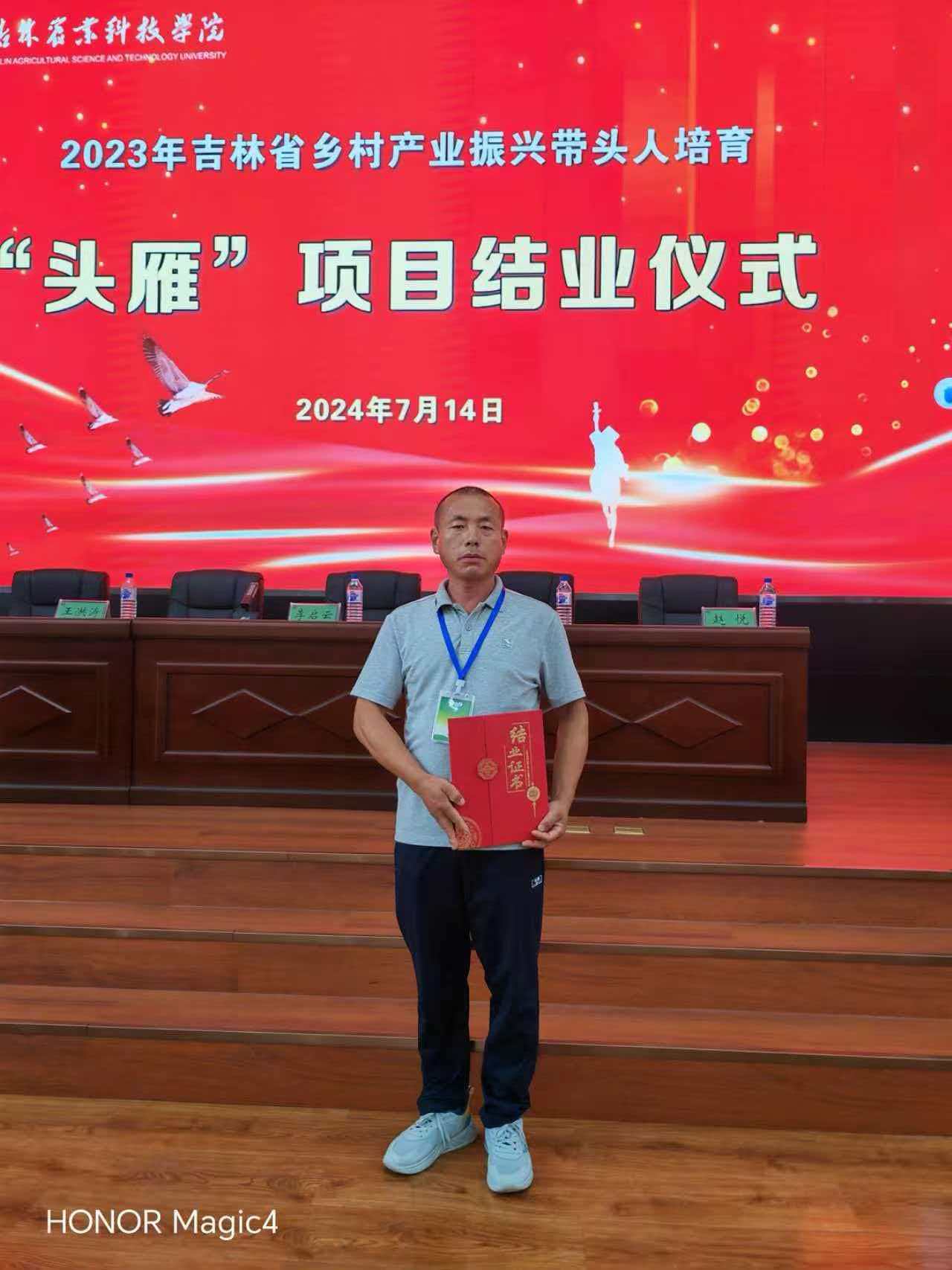 2023年,刘永亮很荣幸成为吉林省乡村产业振兴带头人“头雁”项目的一只小雁,飞进吉林农业科技学院成为了一名学员。在这里,他知道了“头雁领航、雁阵齐飞”带动全省新型农业主体的格局,也弄懂了打造“引领一方、带动一片”的乡村振兴骨干力量的定位。通过两年的学习,在学校和老师的帮助下,他们收获了知识改变命运的果实。